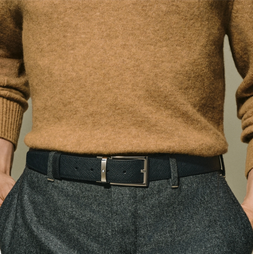 Двухсторонний мужской ремень Montblanc: кожа черного и коричневого цвета 35 мм от магазина премиальных ручек Premium Pens в Пскове.
