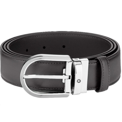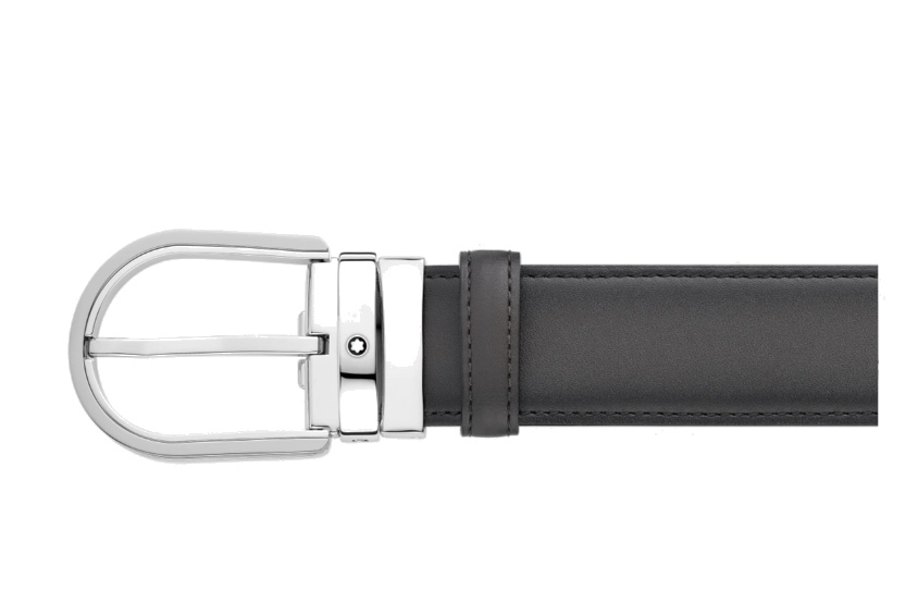 Кожаный ремень с пряжкой в форме подковы серого цвета 35 мм от магазина премиальных ручек Premium Pens в Пскове.